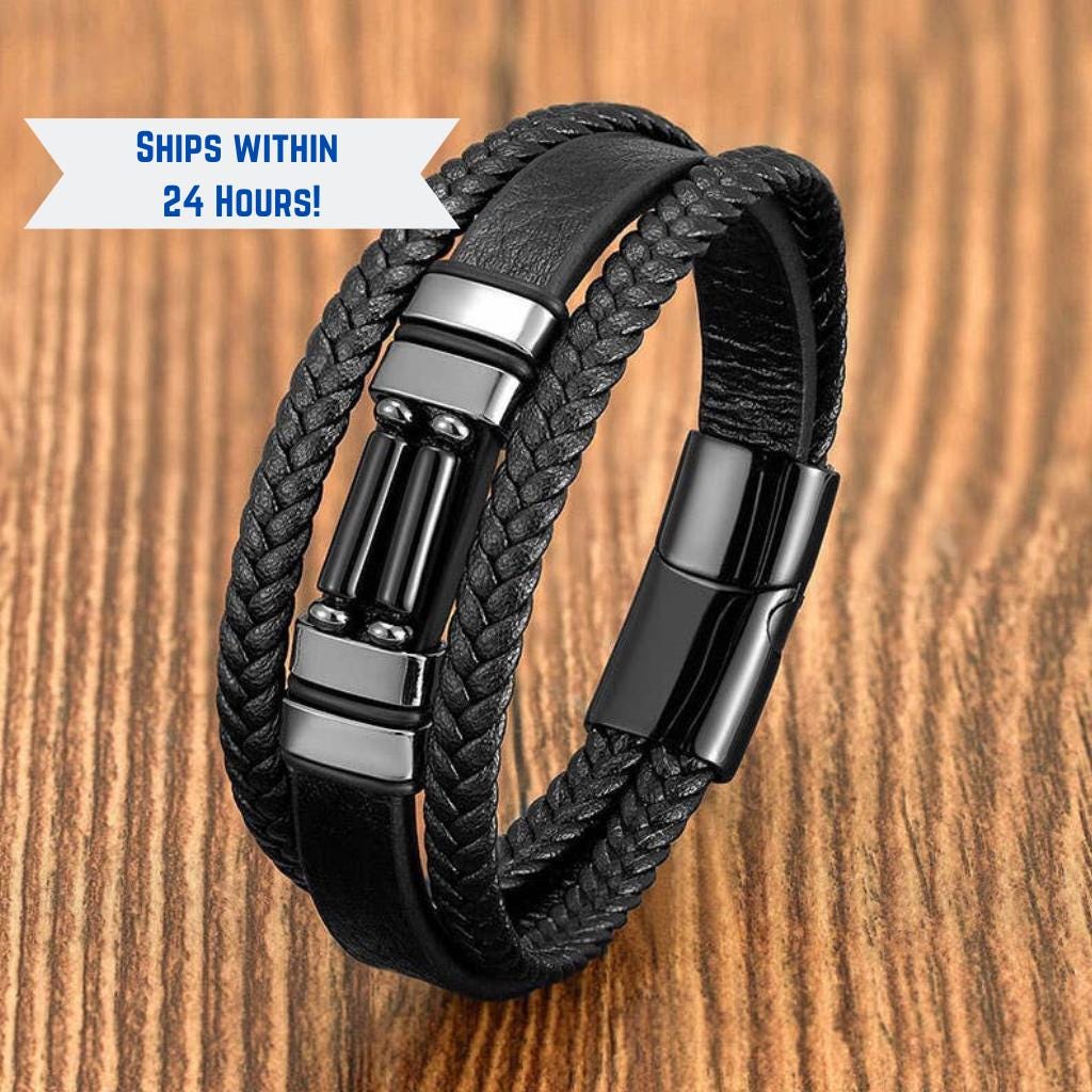 Elevate Your Style with Our Men's Black Leather Braided Bracelet