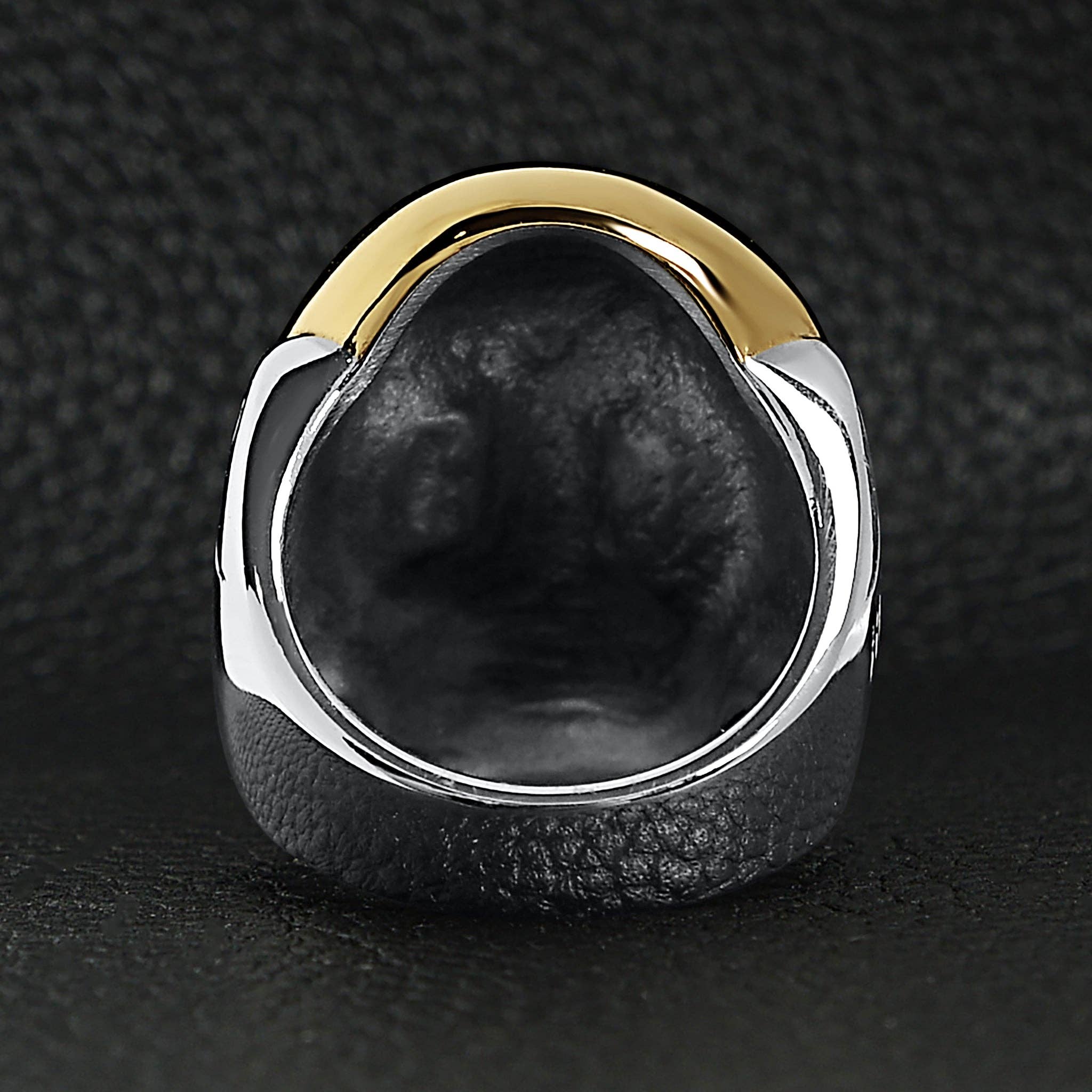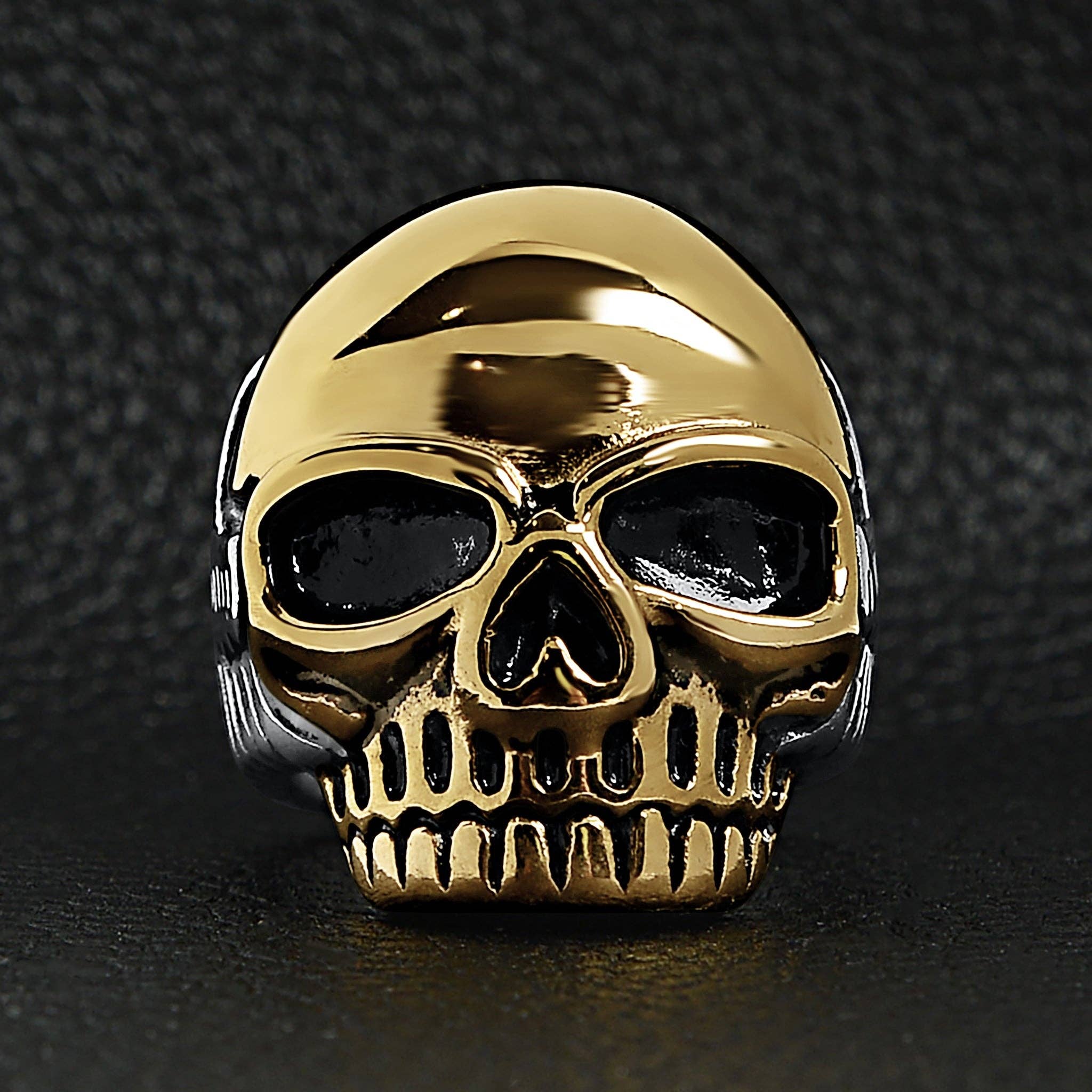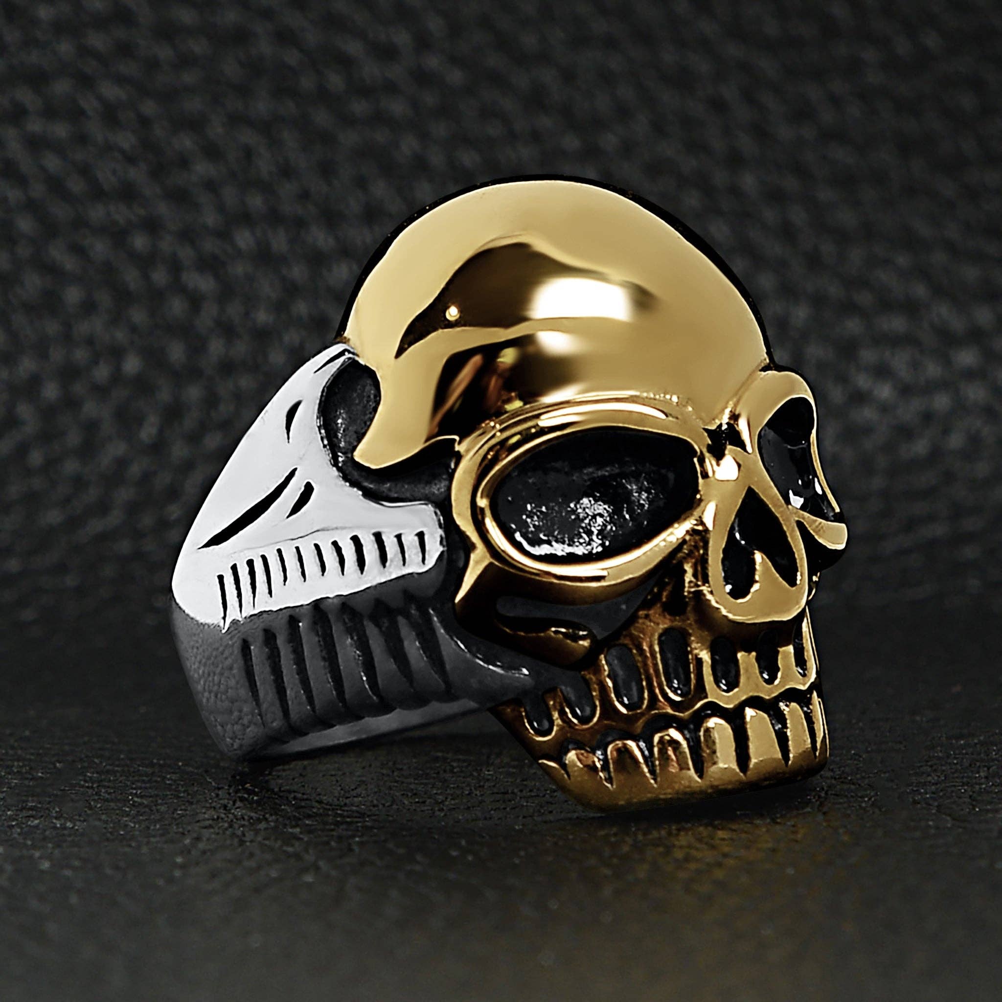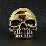 Men's Bold Stainless Steel and 18K Gold Coated Skull Ring - Biker Ring - Men's Gifts