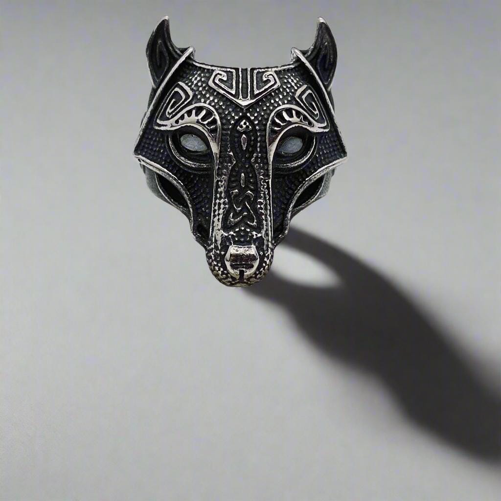 Viking Wolf Head Ring: Stainless Steel Biker Ring