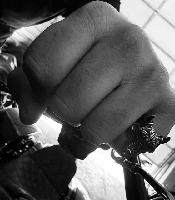 Unleash your inner rebel with our Viking Wolf Head Stainless Steel Men's Ring! This daring and masculine accessory features a bold wolf head design, perfect for the fearless motorcycle rider. Channel your adventurous spirit with this unique piece!